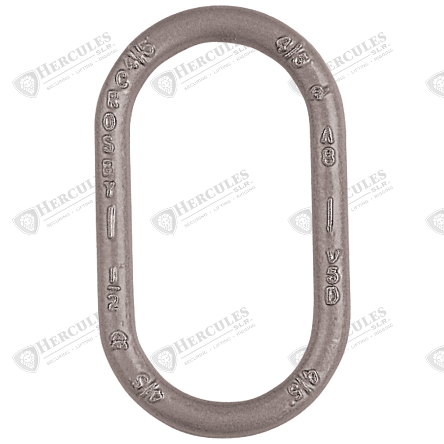 Crosby A342 1/2" 'W" Alloy Master Link: Alloy steel Quenched & Tempered. Individually Proof Tested to values shown, with certification. Proof Tested with special fixtures sized to prevent localized point loading. Forgings have a Product Identification Code (PIC) for material traceability, along with the size, the name Crosby and USA in raised lettering. Selected sizes designated with W in the size column have enlarged inside dimensions to allow additional room for sling hardware and crane hook. Crosby 7/8 to 2 A-342 master links are type approved to DNV-ST-E271-2.7-1 Offshore Containers. These Crosby master links are 100% proof tested, MPI and impact tested. The tests are conducted by Crosby and 3.1 test certification is available upon request. Refer to the Crosby COLD TUFF master links that meet the additional requirements of DNV rules for certification of lifting appliances - Loose Gear. Incorporates patented QUIC-CHECK deformation indicators. Fatigue rated to 20,000 cycles at 1-1/2 times the Working Load Limit. Meets or exceeds all requirements of ASME B30.26 including identification, ductility, design factor, proof load and temperature requirements. Importantly, these links meet other critical performance requirements including fatigue life, impact properties and material traceability, not addressed by ASME B30.26.
